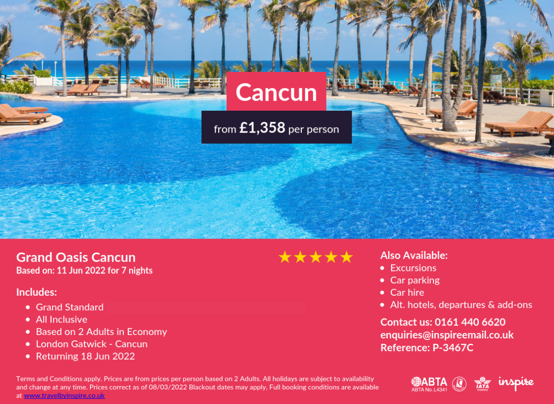 Grand Oasis Cancun is an all-inclusive hotel that is very close to all the fun and the best attractions in the Cancun hotel zone. When you stay at Grand Oasis Cancun you'll get to live a luxury vacation near one of the most beautiful beaches of the Caribbean. Among the wide array of options at Grand Oasis Cancun, you'll find breathtaking live presentations, moments of true entertainment, such as concerts, music festivals, stage presentations and theme parties; everything is part of the all-inclusive experience.